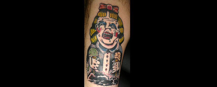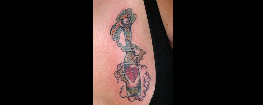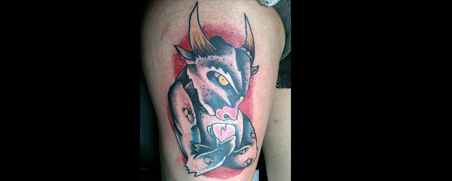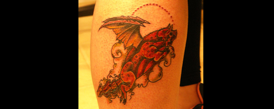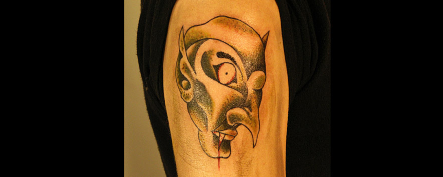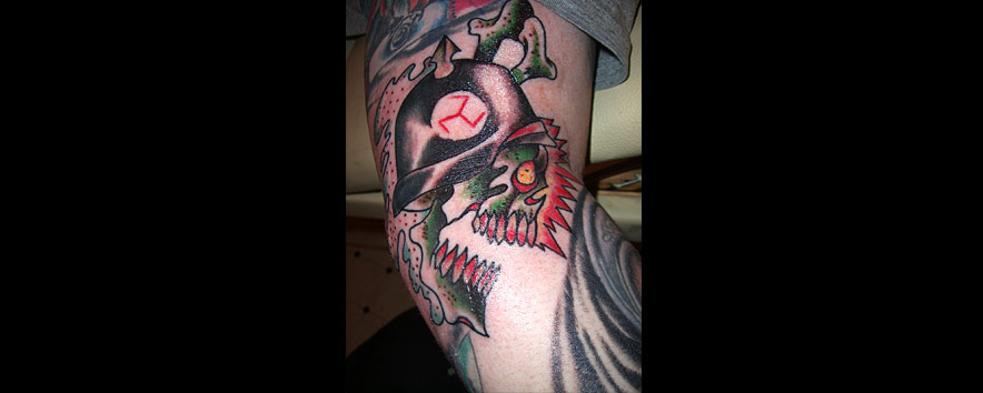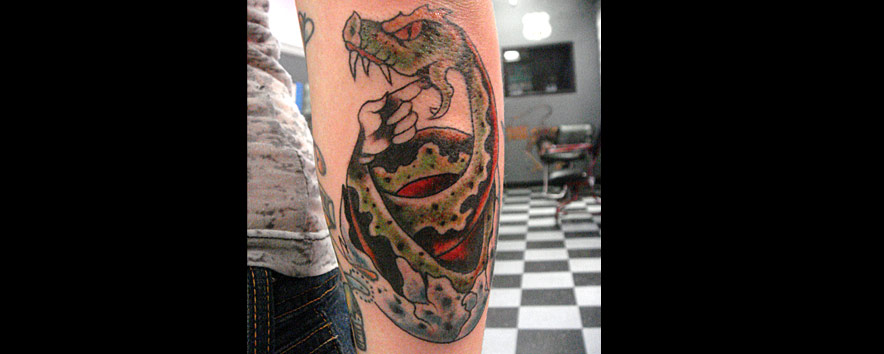 Hello. I am Jason McDonald. I have been tattooing since the spring of 2000. I like to do bold and graphic tattoos, with plenty of black. I like funny tattoos and clever tattoos and doing custom tattoos on you! I like sci-fi and Godzilla and Twin Peaks and cats...I like cats. I have some trophies for making tattoos that I did, if you're into pageantry and tests of skill.